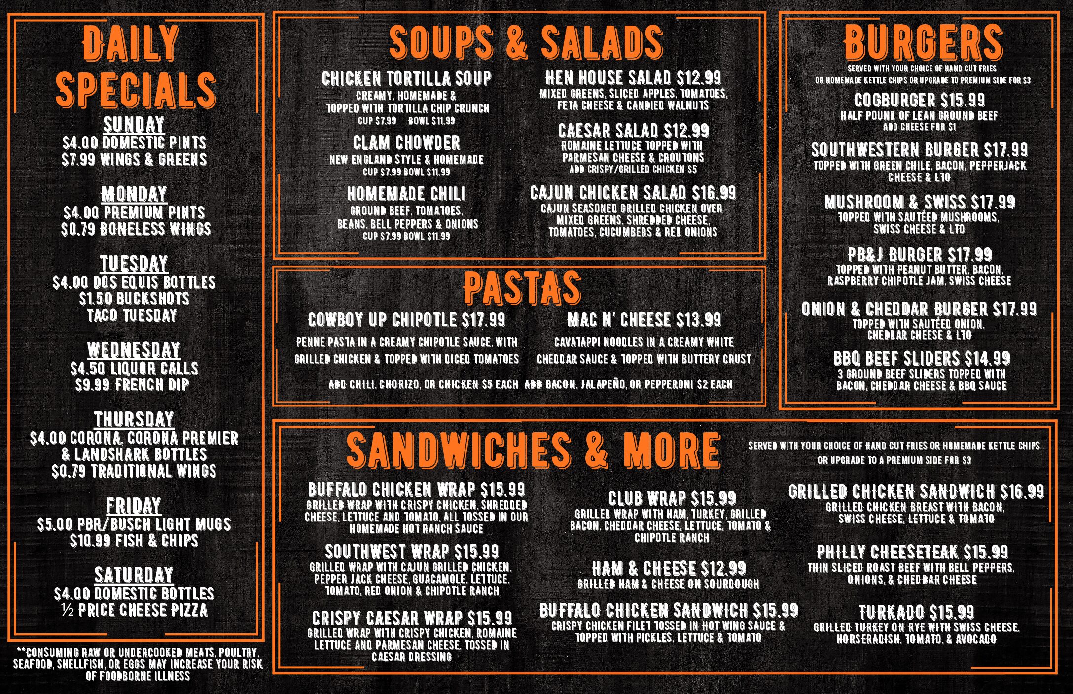 Cogburn's Full Menu
